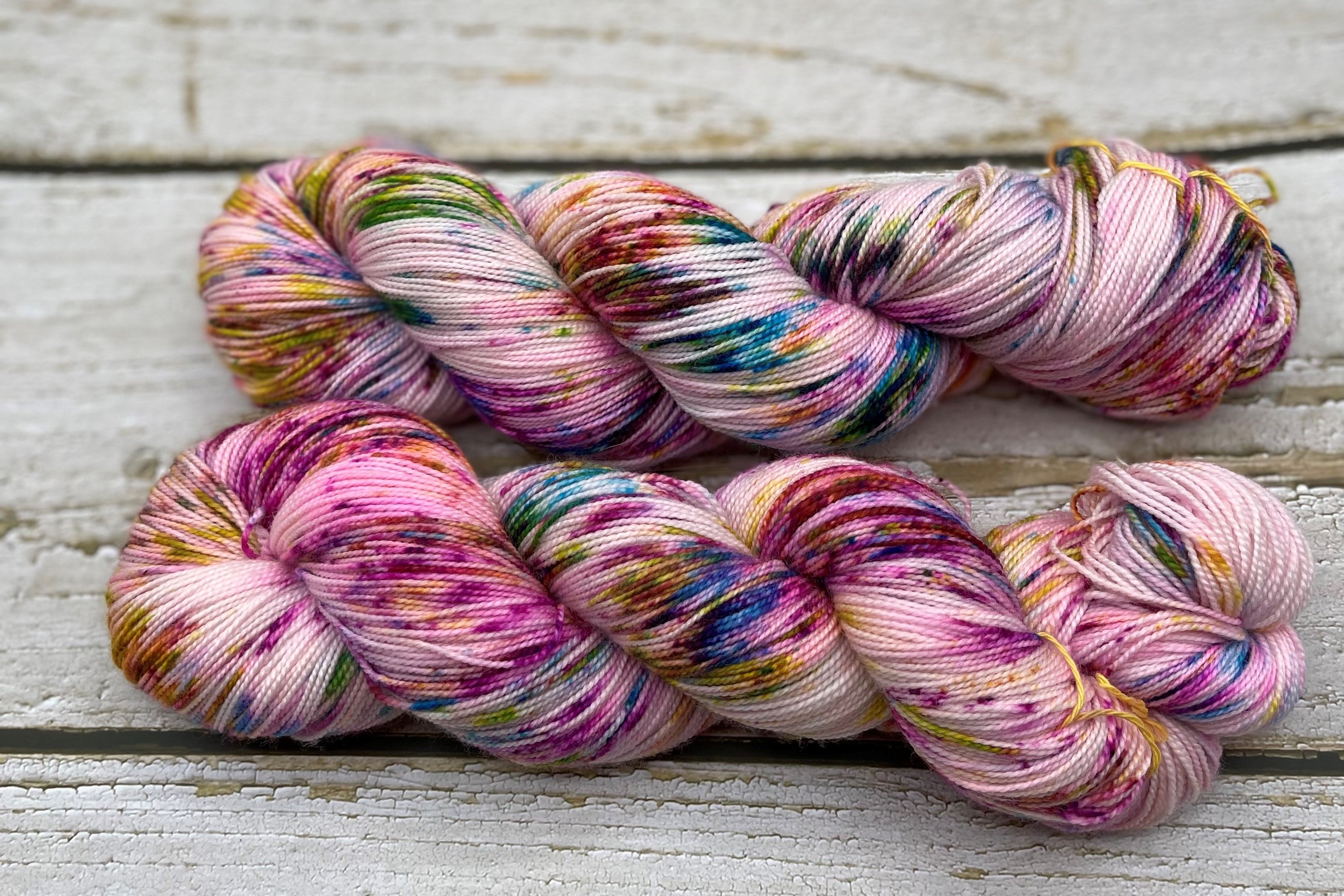 Bizzy Bizzy is a beautifully speckled yarn of different pinks, greens and blues and adds a fun element to your knitting projects. This yarn is available on multiple bases: